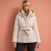 Elegante gewatteerde jas met capuchon en ceintuur voor dames | Jackalyn