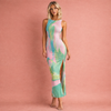 Mouwloze maxi-jurk met waterverfprint voor dames | Paulien
