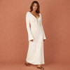 Maxi-jurk in haaklook met diepe halslijn en lange mouwen voor dames | Saskia